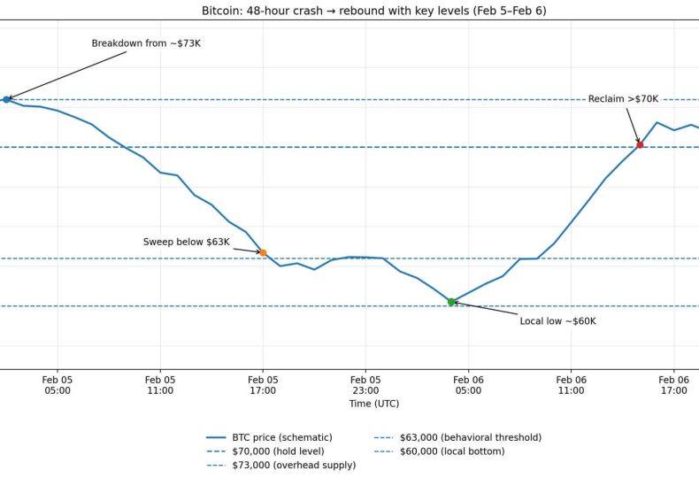 Bitcoin experienced a steep decline over the last 24 hours, pushing its price to approximately $60,000 amid an accelerated selloff comparable to the 2022 FTX collapse. BTC had recovered to $69,800 as of press time, according to CryptoSlate data. Still, Glassnode data